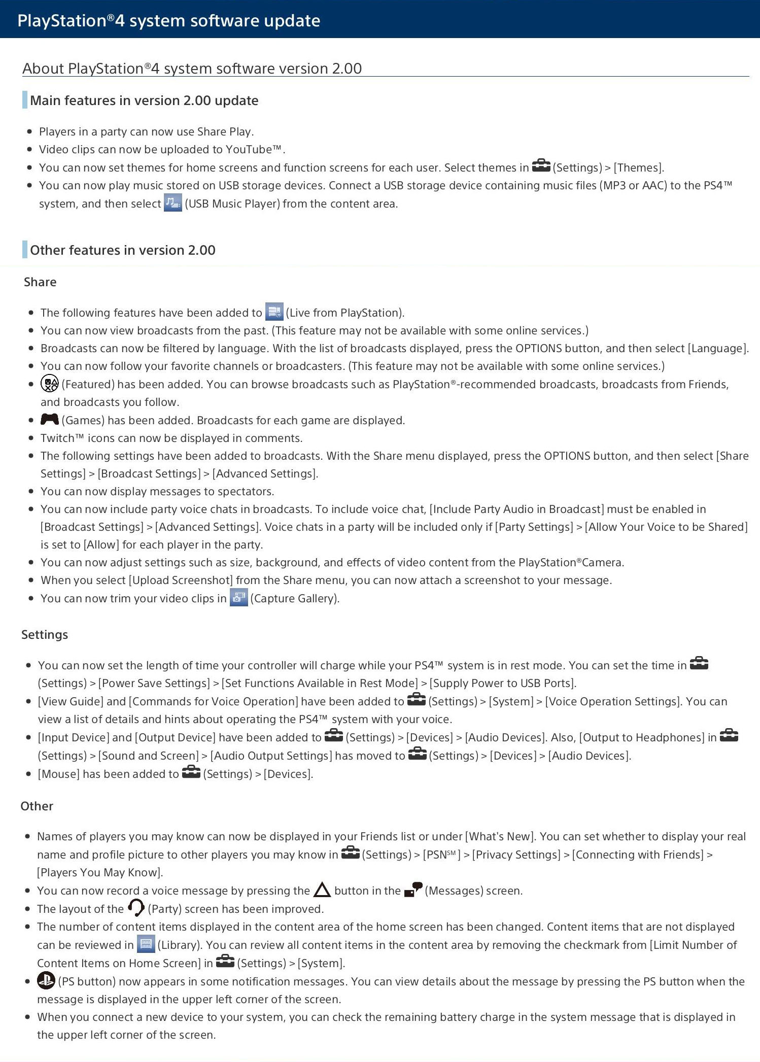 Liberada oficialmente pela Sony nesta terça-feira (28), a atualização 2.0 do PlayStation 4 — conhecida como “Masamune” — traz mais mudanças do que o esperado para o console. Além de introduzir recursos esperados como o SharePlay e o upload de vídeos diretamente para o YouTube, o patch introduziu pequenas melhorias, como a capacidade de configurar quanto tempo seu controle vai ficar carregando enquanto o console está em modo de espera.
